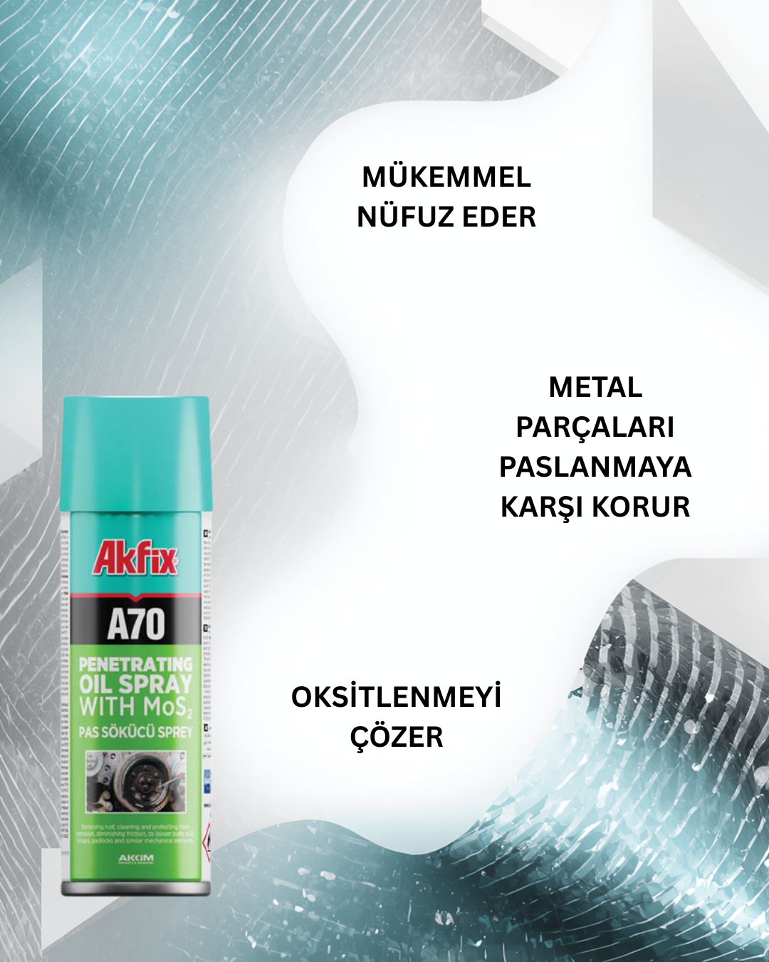 Akfix A70, Mos2 katkılı pas sökücü spreydir.