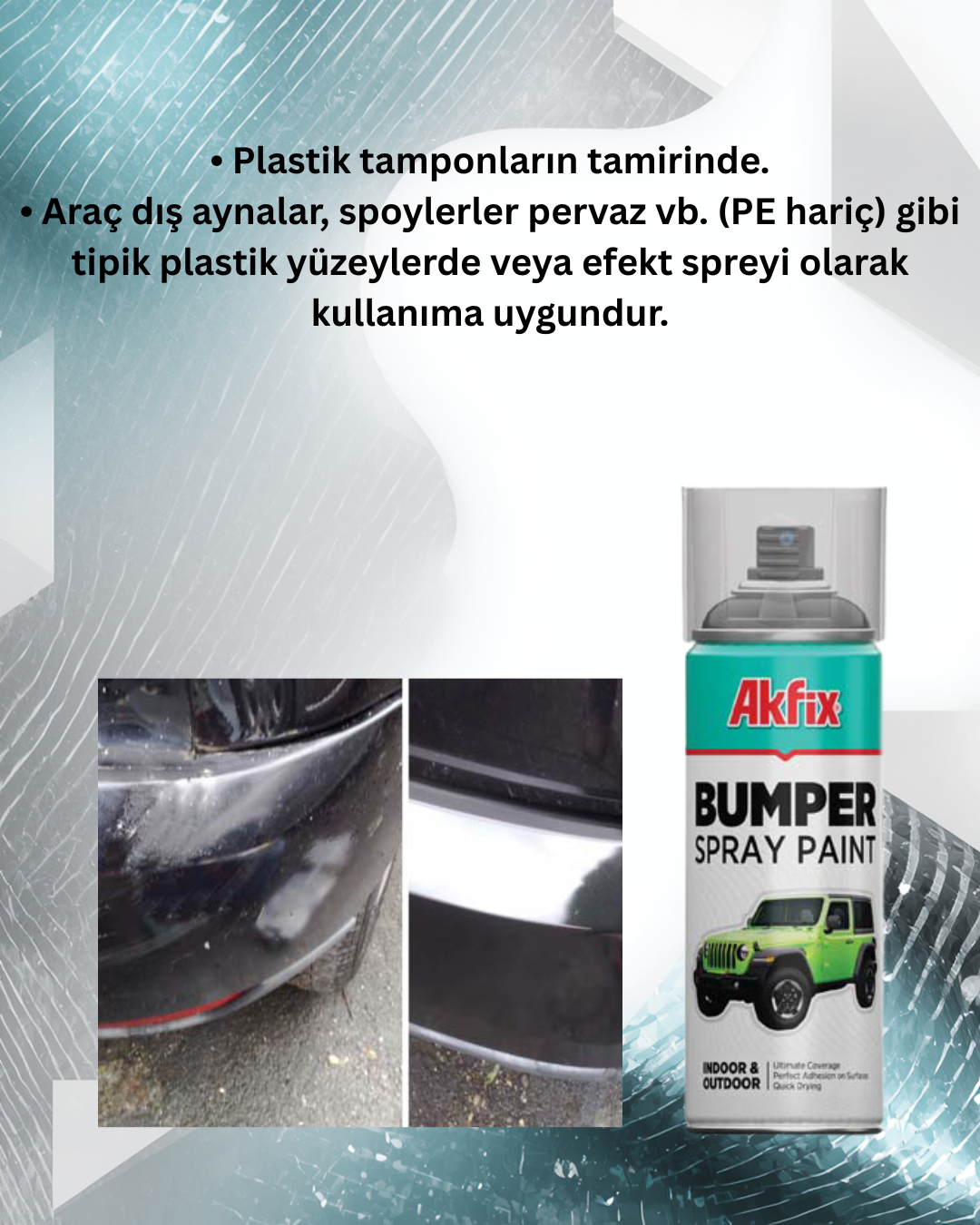 • Araç dış aynalar, spoylerler pervaz vb. (PE hariç) gibi tipik plastik