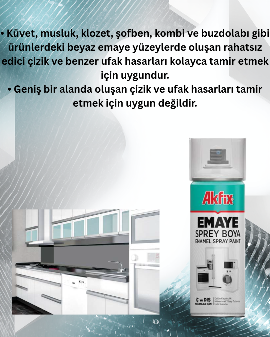• Beyaz ve parlak emaye yüzeyler oluşturur.