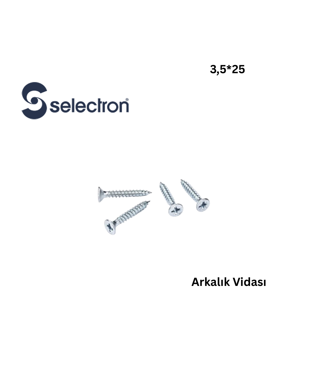 Selectron 3.5×25 arkalık vidası, mobilya ve dolap arkalıklarının montajında kullanılan dayanıklı bir bağlantı elemanıdır. Ahşap ve MDF yüzeylerde güçlü sabitleme sağlar.